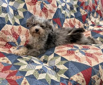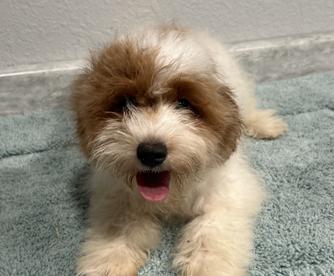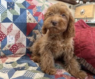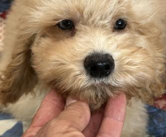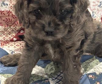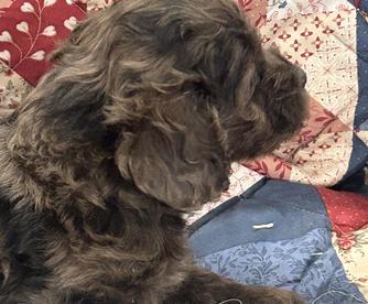Sandy is a Multigen Cockapoo with a thick, wavy non shedding coat. She is a reserved, laid back girl that is content to cuddle on the couch!