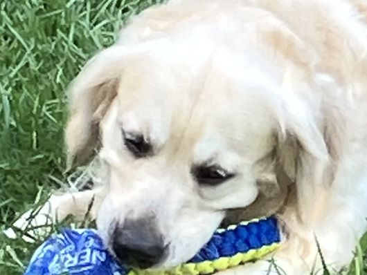 Candy is a truly precious pet. Typical of a Golden Retriever, she loves to fetch and usually carries a toy around with her. Her temperament is calm, affectionate, obedient, and focused. She cleared genetic testing by passing 100% of all 211 disease markers. Test revealed healthy hips. Candy is a gentle and loving pet who consistently makes beautiful babies. While we've received nothing but thrilled responses from all of our puppy families, two families have returned for a second Candy Cane puppy. Please feel free to ask any questions. We realize this decision will be one of your most important ones ever! Beth