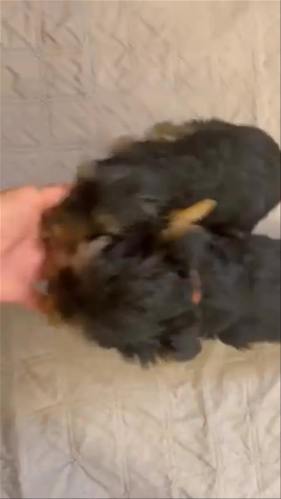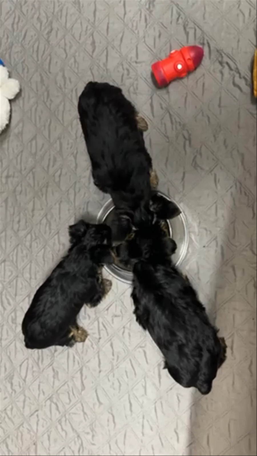 She is a German Shepherd (in the best of ways) I’m a Yorkie body. This is a highly intelligent, agile and intoned dog. She is brave, courageous and obedient, as well as personable, cuddly and caring. She is small in stature but solid and sturdy. Great mom to this litter (her 1st one). She gave birth totally on her own with no complications whatsoever. American bred line.