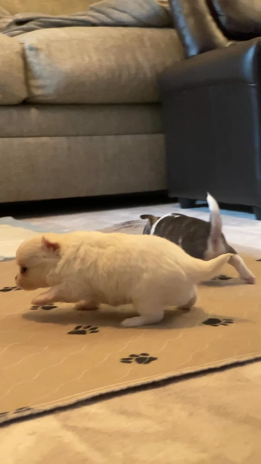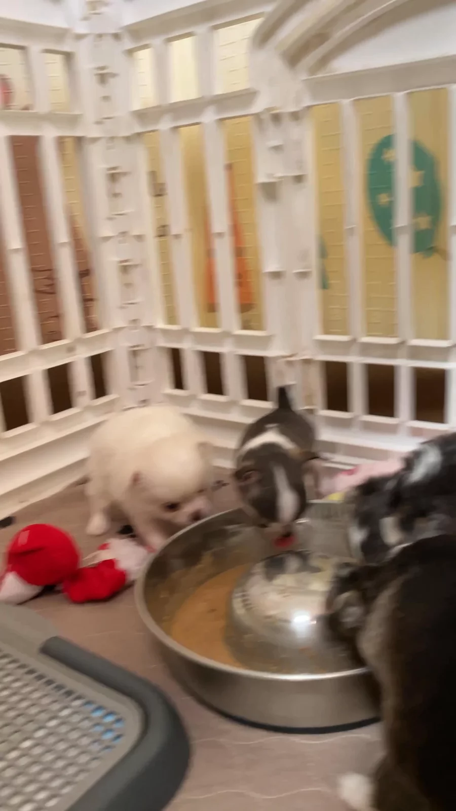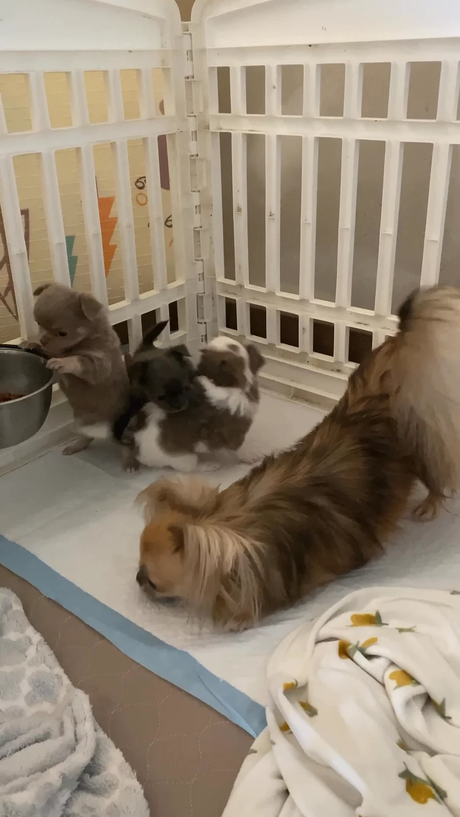 Starting the journey to becoming big puppies. Weaning off momma’s milk and on to mush.