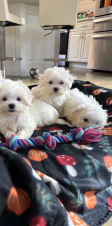 We have a stunning litter of 4 Maltese puppies. There is 3 precious girls and one beautiful boy. They come with Akc limited registration ( no breeding rights ) and first round of vaccines. If interested please fill out an application .
