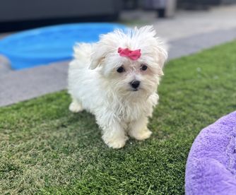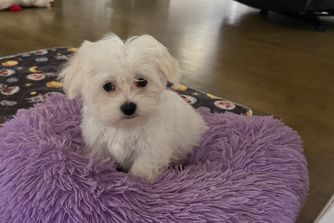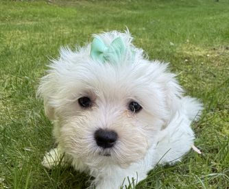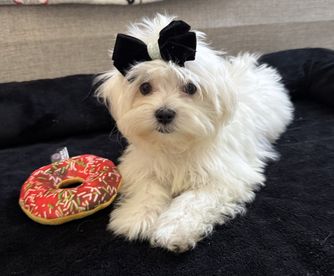 Sydney is a sweet and calm Maltese who is a wonderful mom and has produced stunning puppies.