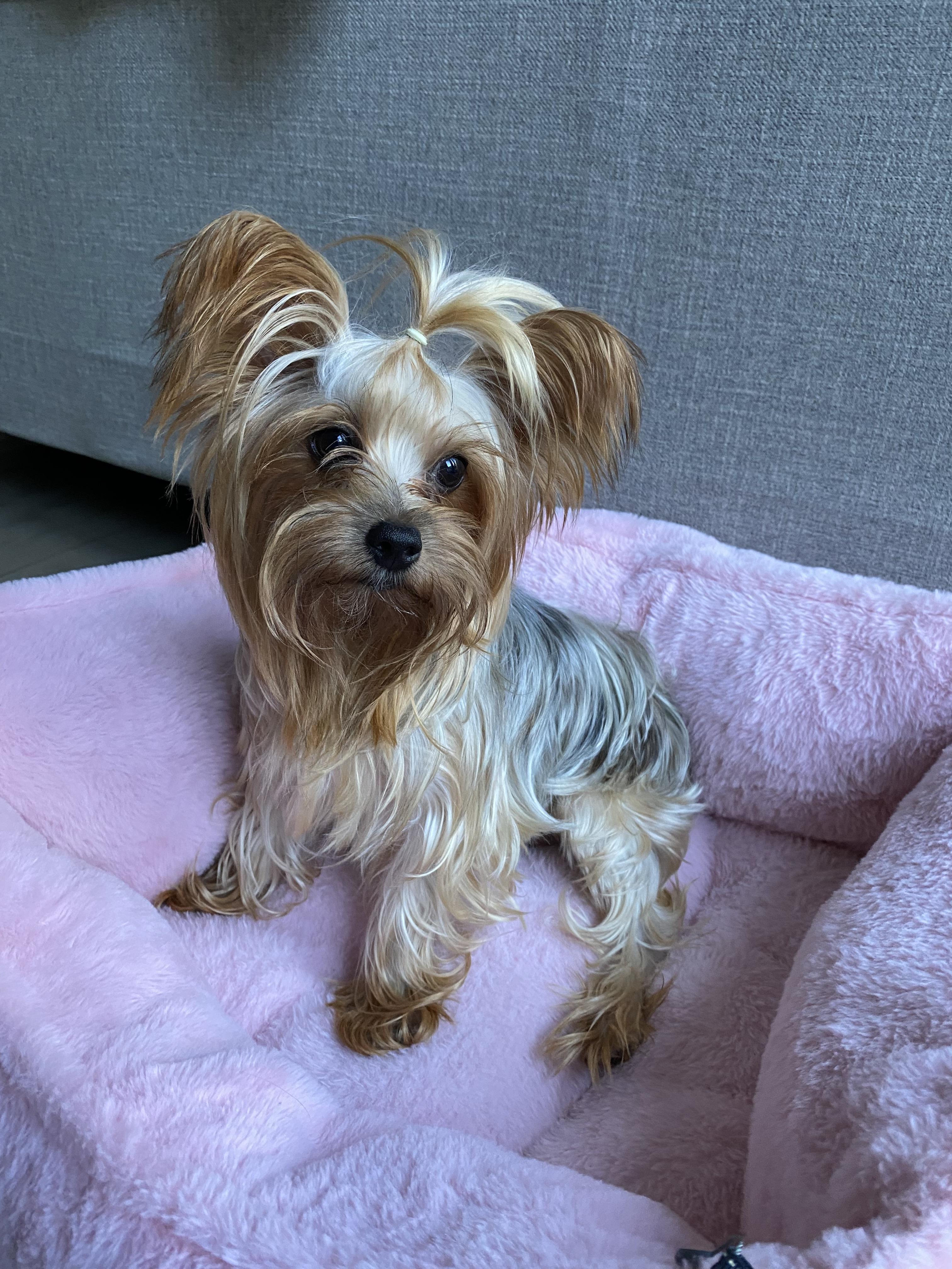Sadie is a female Yorkshire Terrier. Carefully selected as a great representative of her breed, Magdalena decided to make her part of their program. Magdalena has passed Good Dog’s screening process, which involved a review of their breeding practices, environment, and the mental and physical health of their dogs.