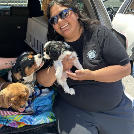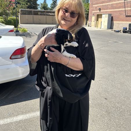 I'm Marcia C., the breeder behind Happy Tails Kennel located in Oroville, CA. I am a retired sensory processing teacher. After retiring, I missed working with children. I transitioned to raising puppies. I use the same calming and centered tools on the puppies that I used for children. This creates calm, loving family dogs.