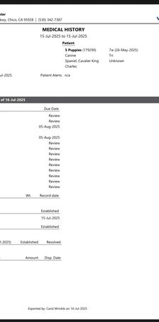 Their first visit with Dr. Wrinkle was on 7/15/25. They need to be seen by your vet on or around 8/5/2025. Please schedule an appointment with your vet asap. ❤️🐶❤️