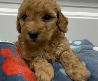Our Cavapoo puppies are miniature size. Poodle puppies include miniature and standard sizes. Sizes will vary depending on the parent dogs.