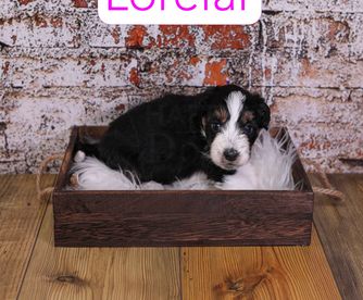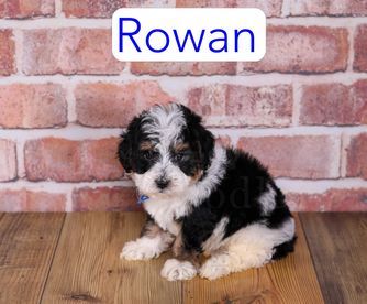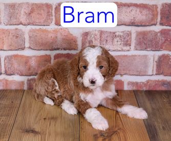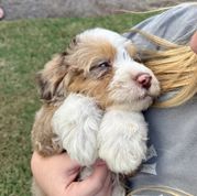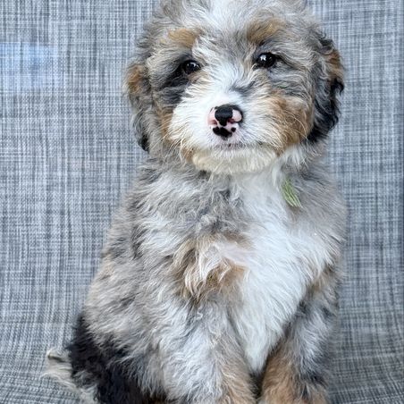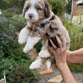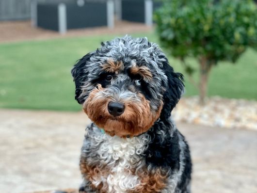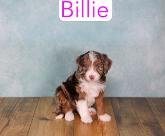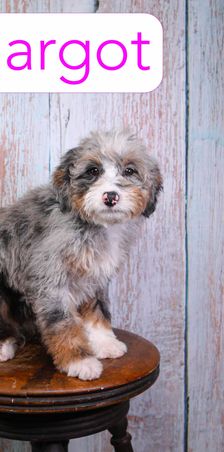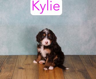 Cavapoo puppies include chocolate and black and tan. Goldendoodle puppies include apricot and red. Aussiedoodle puppies include blue merle, black phantom, and black tri-color. Bernedoodle puppies include tri-color and phantom. Colors will vary depending on the parent dogs.
