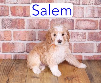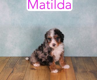 Cavapoo puppies are miniature size. Goldendoodle puppies include miniature and medium sizes. Aussiedoodle puppies are mini size. Bernedoodle puppies are mini size. Sizes will vary depending on the parent dogs.