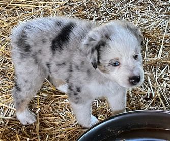 Our puppies include black, red merle, and blue merle. Colors will vary depending on the parent dogs.