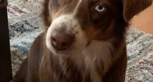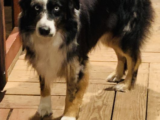 Minimal Blue Merle, blue eyes, awesome cool temperament. Awesome show dog quality hair. Awesome character…very obedient. Loves to please. He is an Awesome Aussie…