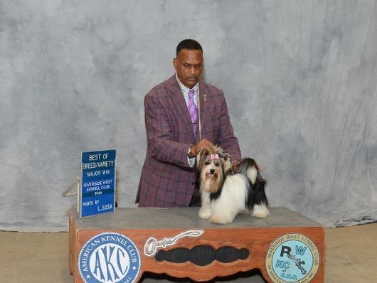 Charlotte is a female Biewer Terrier. Carefully selected as a great representative of her breed, Lori decided to make her part of their program. Lori has passed Good Dog’s screening process, which involved a review of their breeding practices, environment, and the mental and physical health of their dogs.