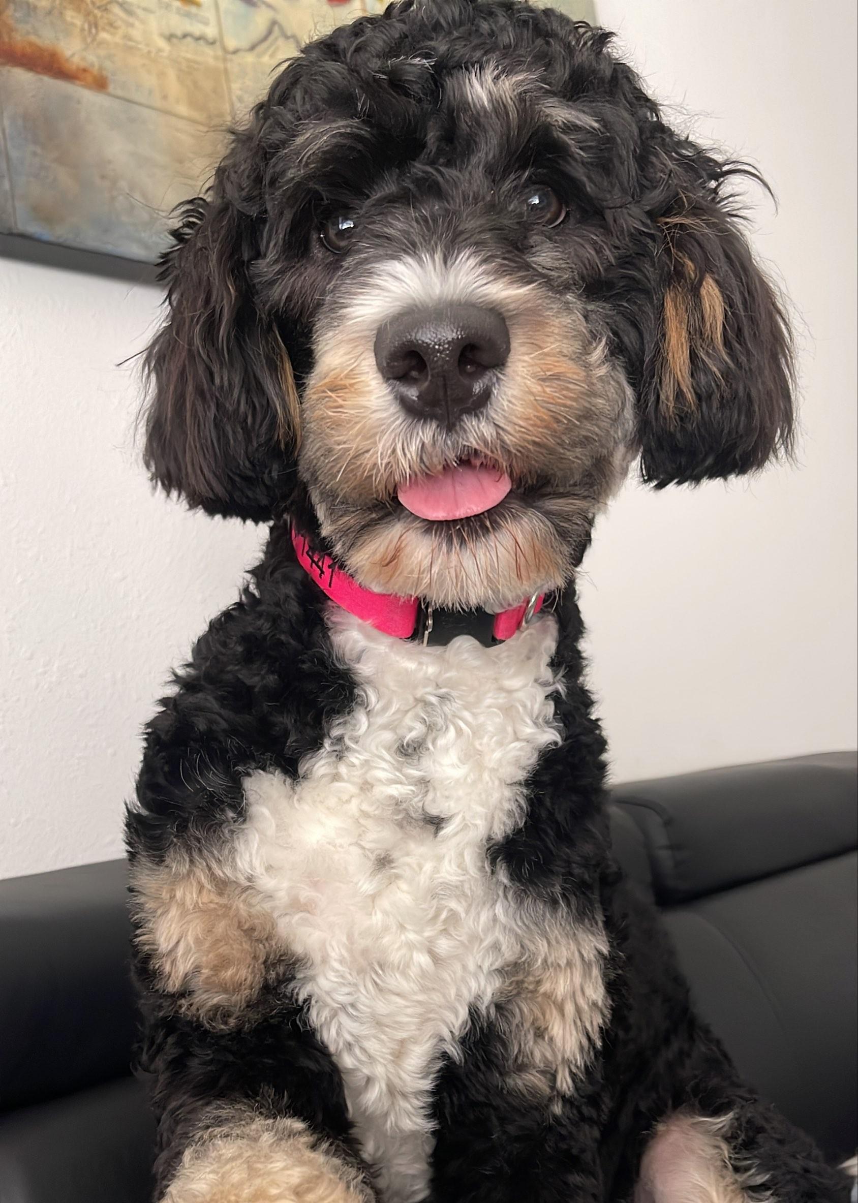 Our Goldendoodle puppies include apricot and red. Poodle puppies are red. Cavapoo puppies include cream, tri-color, blenheim, and black and tan. Bernese Mountain Dog puppies are tri-color. Bernedoodle puppies are tri-color. Colors will vary depending on the parent dogs.