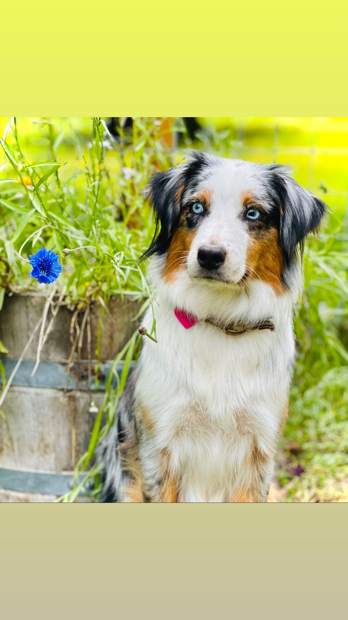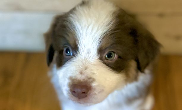 Our puppies include blue merle, black tri, and red. Colors will vary depending on the parent dogs.