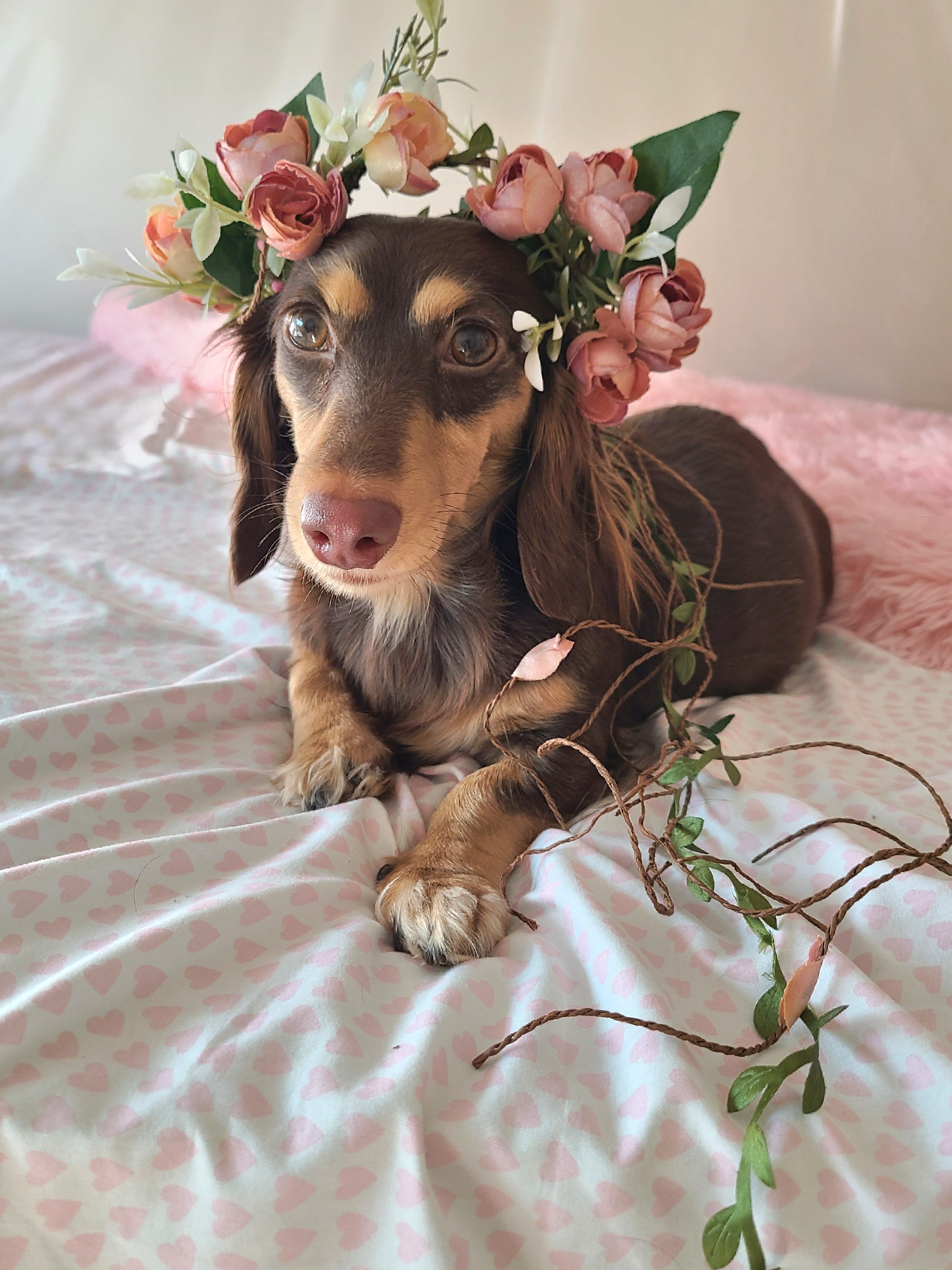 Daisy is a female Dachshund. Carefully selected as a great representative of her breed, Jessica decided to make her part of their program. Jessica has passed Good Dog’s screening process, which involved a review of their breeding practices, environment, and the mental and physical health of their dogs.