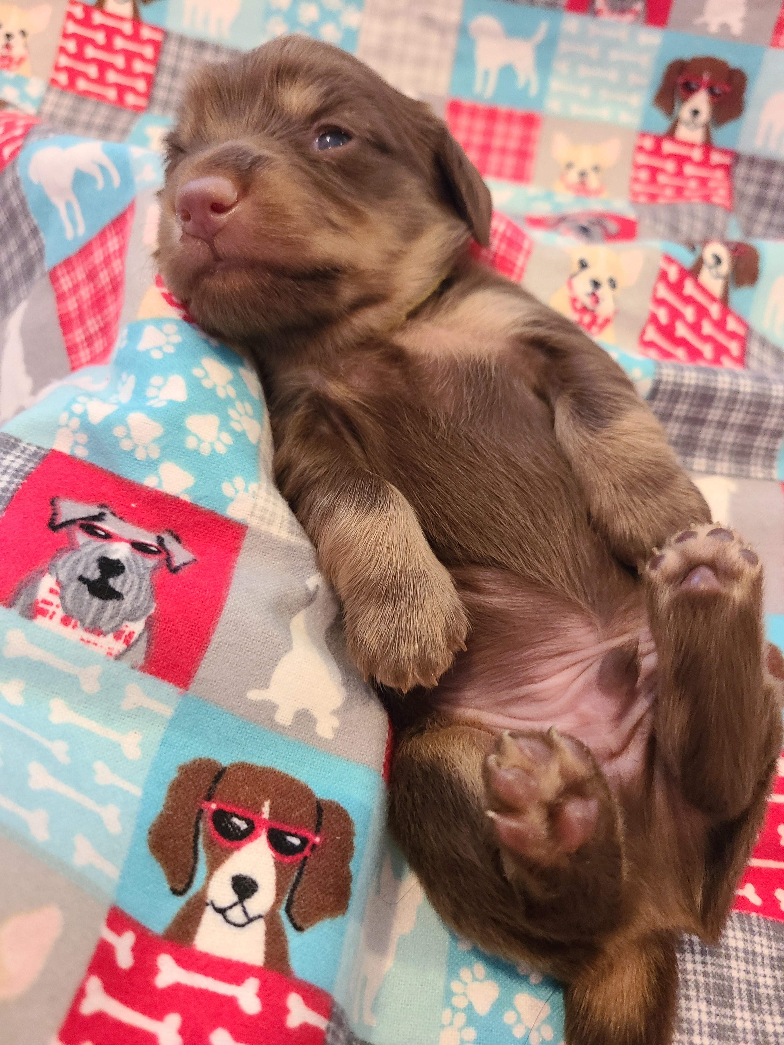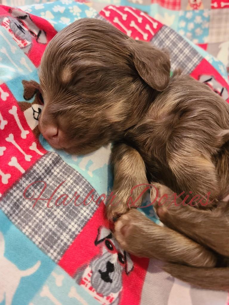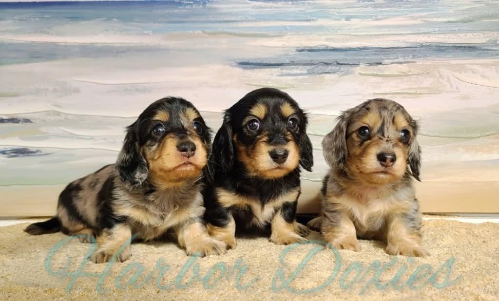 I'm Jessica, the breeder behind Harbor Doxies located in Panama City, FL. We cherish each of our dogs and puppies, and we do everything we can to make sure that they get the best lives possible. That includes everything from choosing healthy parents with good temperaments, to proper socialization and daily care, to placing them in loving homes with wonderful families. We strive to provide each of our puppies and their families with a truly positive experience!