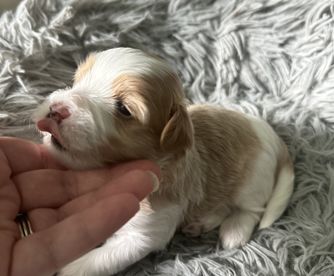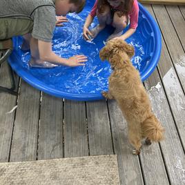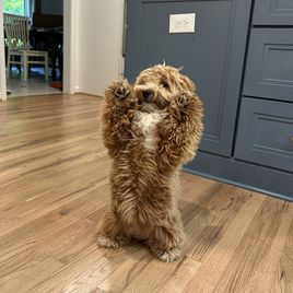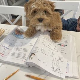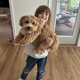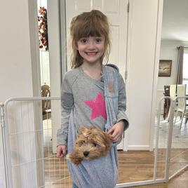 Our little 15-week-old Pippin came to us in excellent health and clearly well cared for. He has been such a joy—sweet, spunky, and incredibly smart. At just a few months old, he can already fetch, sit, lay down, and shake, and he’s even working on ringing a bell to go outside. He’s been wonderful with our two kids and has truly become a beloved part of our family.