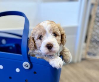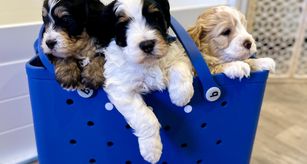 Our puppies include mini and medium sizes. Sizes will vary depending on the parent dogs.