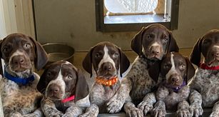 Our puppies include black, black and white, black roan, liver, white and liver, liver roan, and liver and white. Colors will vary depending on the parent dogs.