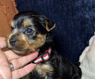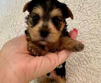 Livvie is a female Yorkshire Terrier. Carefully selected as a great representative of her breed, April decided to make her part of their program. April has passed Good Dog’s screening process, which involved a review of their breeding practices, environment, and the mental and physical health of their dogs.