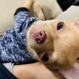 Deacon is a male Chihuahua. Carefully selected as a great representative of his breed, Lesley decided to make him part of their program. Lesley has passed Good Dog’s screening process, which involved a review of their breeding practices, environment, and the mental and physical health of their dogs.