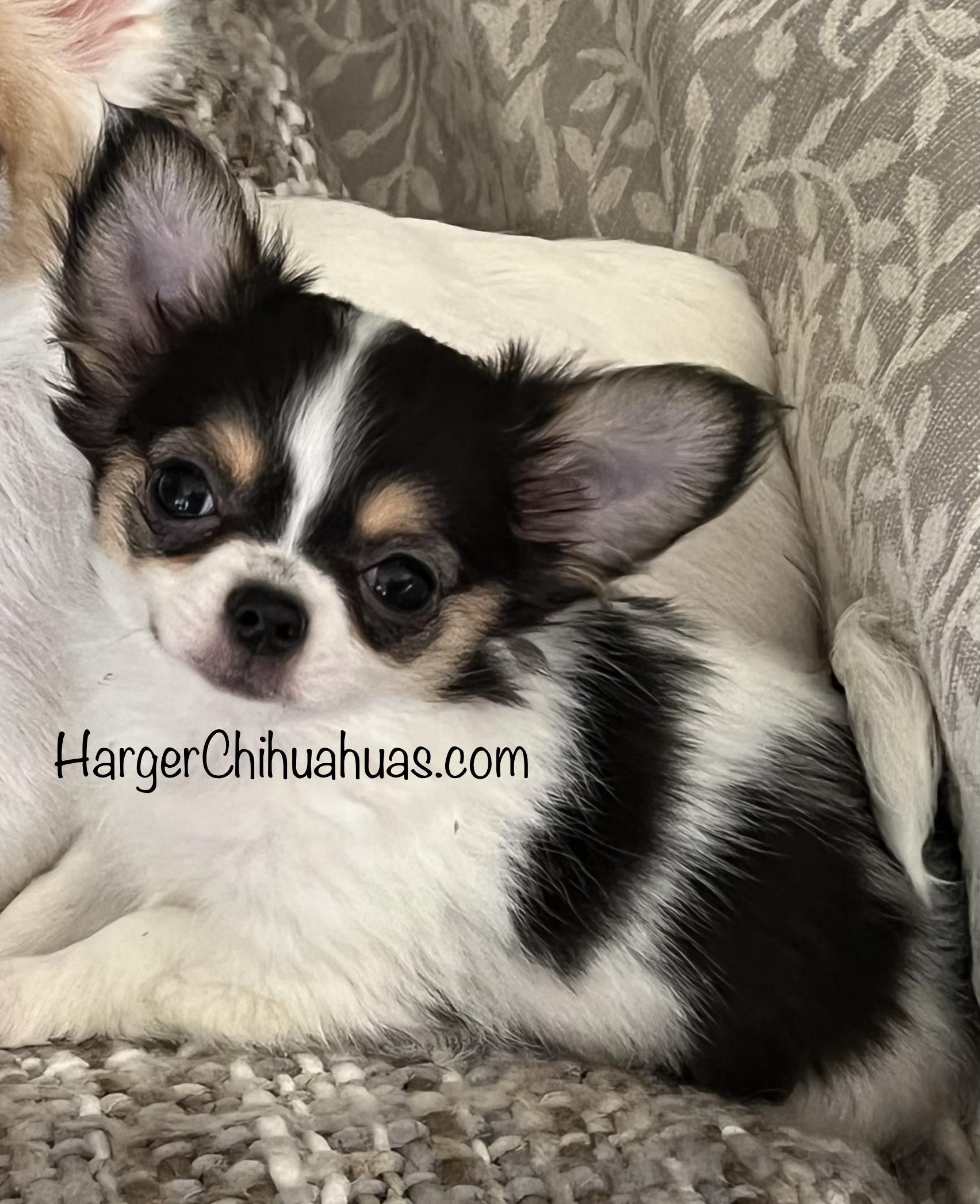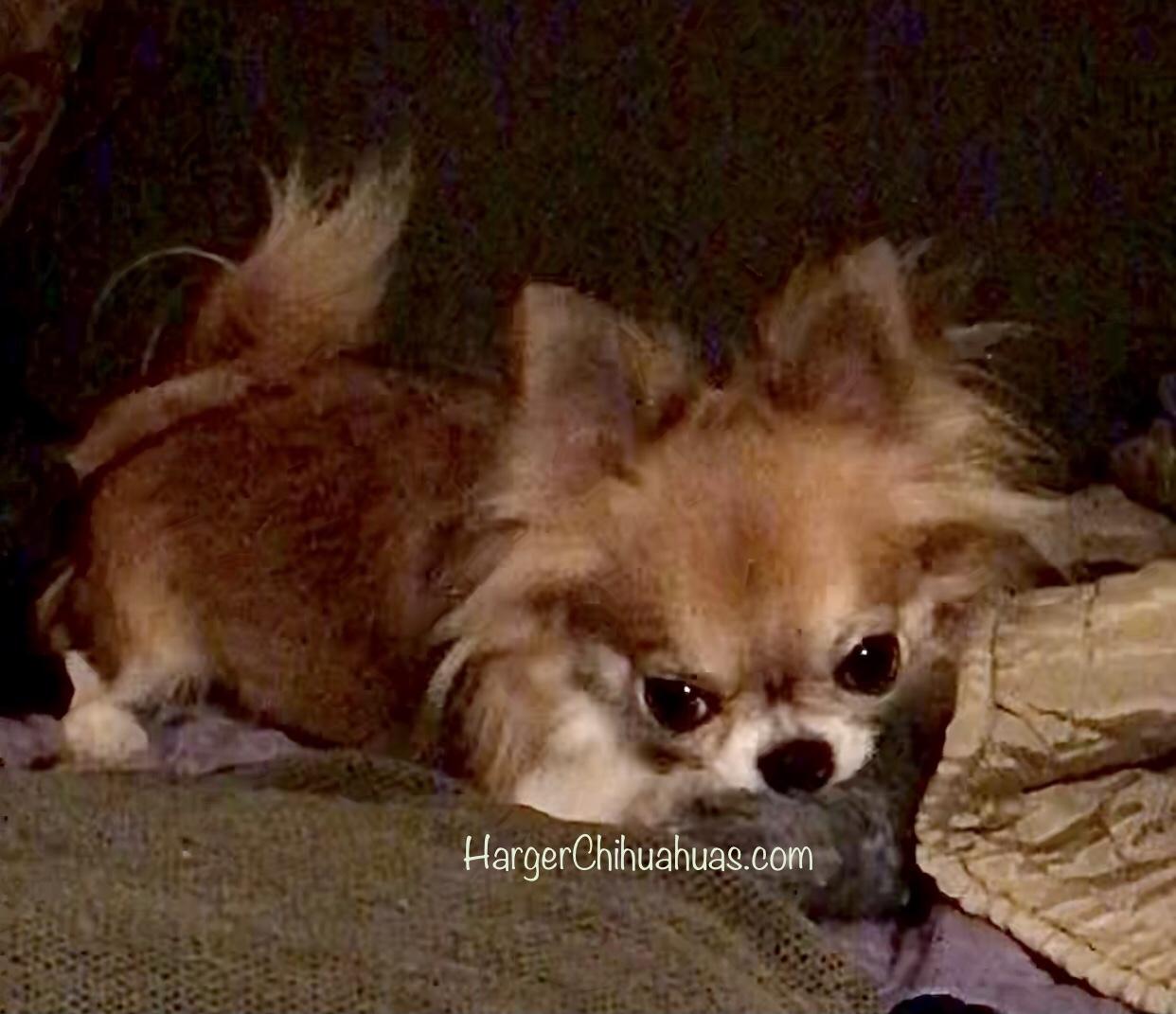 My dogs and puppies are my family, and they get the best of care that I can possibly provide. I am very dedicated to what I do and what I aim to achieve as a breeder. I work with passion, heart, and integrity. If you are interested in a pup, go to my website, HargerChihuahuas.com and click on the available page, and complete the puppy application. I occasionally have a retired adult chi available.