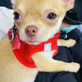 From the moment we met, Leo's charming and handsome appearance caught the attention of many. However, it's his personality and behavior that truly set him apart. Well-socialized, confident, and affectionate, Leo has shown an exceptional ability to bond and interact, demonstrating none of the fearfulness sometimes seen in chihuahuas. His intelligence is evident in how quickly he's learning his name, adapting to potty pad training, and displaying his agility and energy.