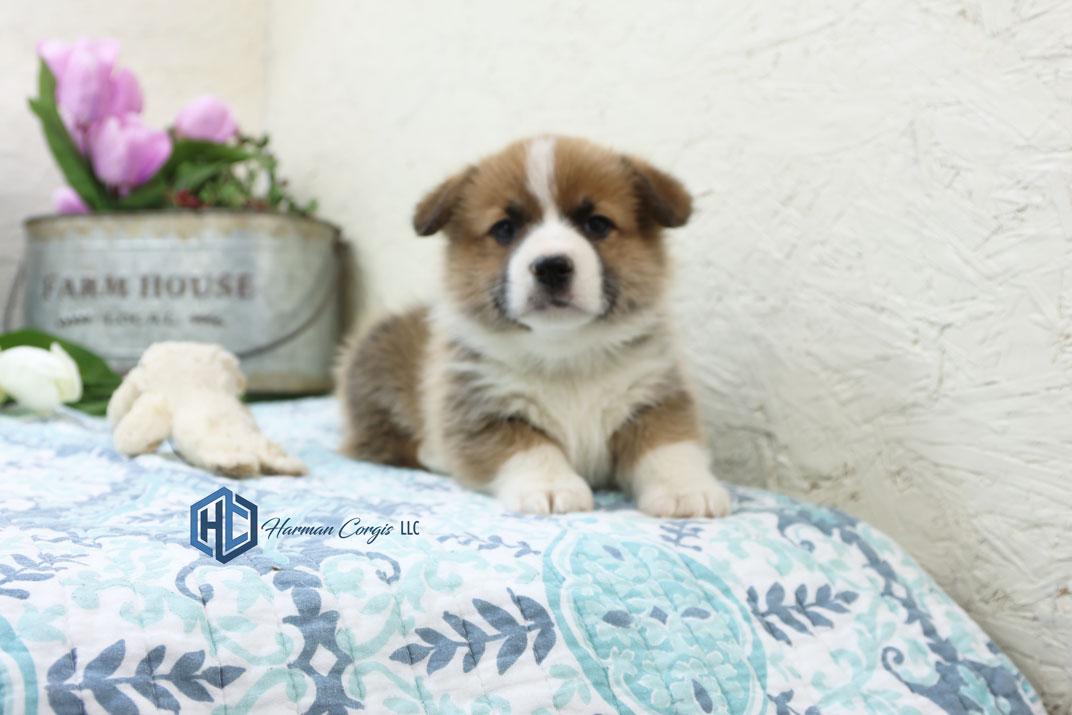 After looking at different breeders, Harman Corgis stood out to us from the rest. Mostly because the breeder was so upfront, informative and how well they raised the puppies up to the time they are to find their forever homes. Our boy Ollie has brought so much joy and happiness in the past 2 1/2 weeks. He is learning quickly and has been great with our families German Shepards. Thank you to Leslie and her husband for providing us with our boy. He was worth the wait and a dream come true. I have recommended Harman Corgis to a few of friends who are looking to have a corgi has a pet.