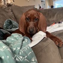 I'm so unbelievably happy with my experience with Harmons Hounds. They were extremely responsive and helpful during the process and also recommended a phenomenal transport service for my puppy from Texas to Michigan. I've always rescued dogs but when I lost my rescue Redbone Coonhound, my best girl, I had to find another one. Our little girl "Roo" from Harmon Hounds is almost 5 months old now and she gets so many compliments on both her beautiful coat and demeanor. Even the vet commented on what a well behaved puppy she is. She's so smart and learns new commands so fast and she loves everyone. She's definitely helping to mend all of our broken hearts and we couldn't be more thankful for her.