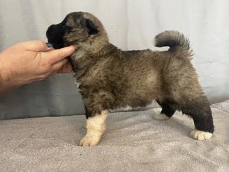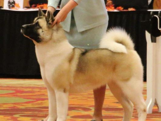El is a coming 3 year old fawn Akita. She has been in my home since she was a puppy, and plays will with most all dogs, a testament to her personality and temperament. El has finished her championship, has her health testing complete and recently won Reserve Winners Bitch at the 2024 Akita National in Peoria, Illinois.