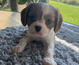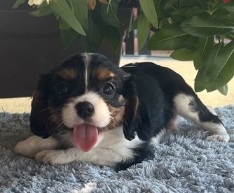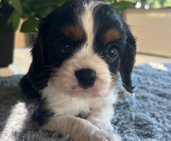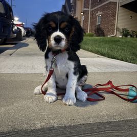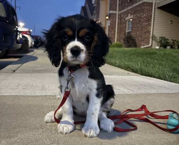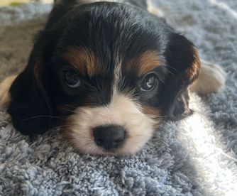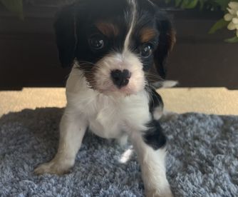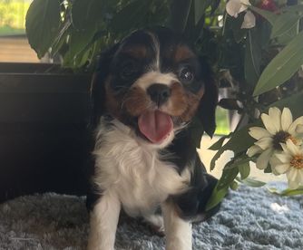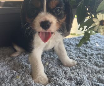 Max is our striking tri-colored Cavalier King Charles Spaniel with a joyful personality and endless affection to give. He loves being the center of attention and will happily follow you from room to room, always ready for snuggles or playtime. Max is impressively quick on his feet—whether racing across the yard or zipping to your side the moment you call.