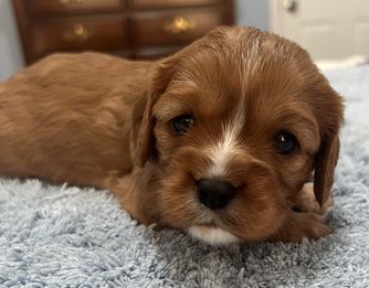 Millie is our beautiful ruby Cavalier King Charles Spaniel with a lively, playful spirit and a heart overflowing with love. She adores attention and is always ready to brighten your day with her happy energy and constant affection. Millie is as eager to give love as she is to receive it, making her the perfect blend of fun and devotion. She has also proven to be a gentle, attentive mother, passing along her affectionate nature and playful charm to her puppies. Her rich ruby coat and cheerful personality make her a true treasure in our Cavalier family.