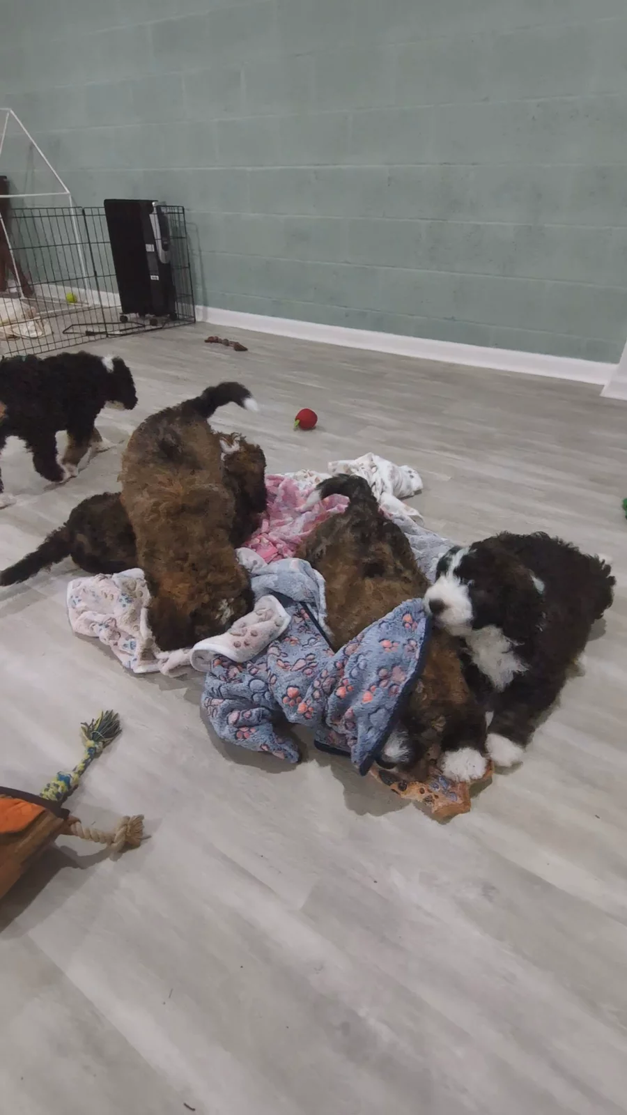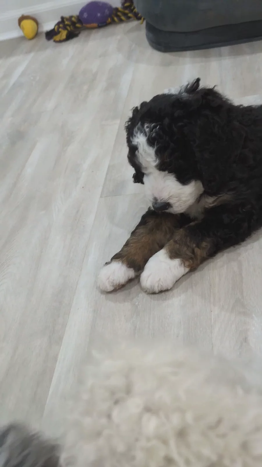 The biggest struggle of being a 6-month-old Bernedoodle? Realizing your favorite nap spot didn’t grow with you 😴🐾 Happy 6 months to our Autumn Harvest pups! We can’t believe how fast time has flown.