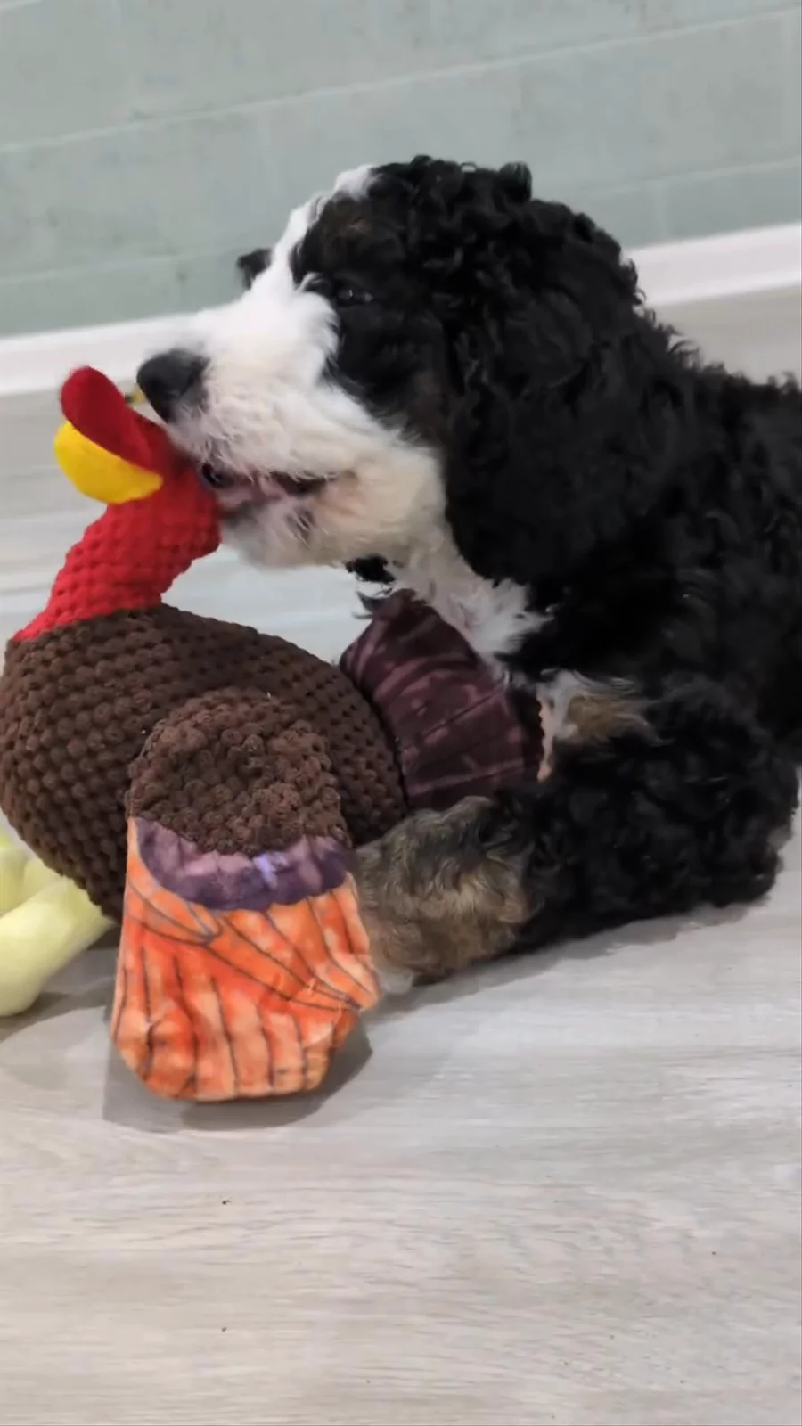 Pumpkin is loving his new turkey toy! 🦃 Like all puppies, these little ones love to chew on just about everything! That chewing instinct will kick into high gear over the next few months as they start losing their baby teeth and those adult teeth come in. Having plenty of safe, durable chew toys on hand is a must for any growing pup! 🐾