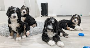 Our journey began years ago with a special encounter with a doodle that sparked our love for the breed. After extensive research, preparation, and mentorship from an experienced breeder, we dedicated ourselves to raising healthy, well-socialized Bernedoodles.