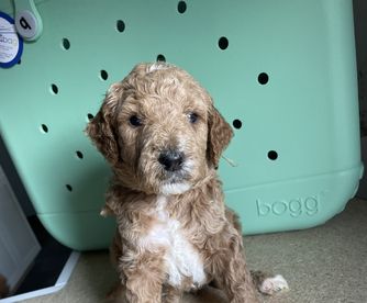 Harper is a female Goldendoodle. Carefully selected as a great representative of her breed, Maria decided to make her part of their program. Maria has passed Good Dog’s screening process, which involved a review of their breeding practices, environment, and the mental and physical health of their dogs.
