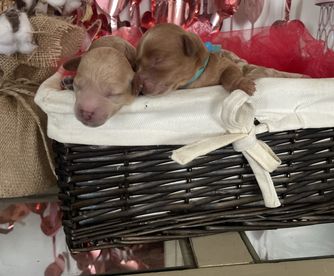 Our puppies include cream, apricot, and red. Colors will vary depending on the parent dogs.
