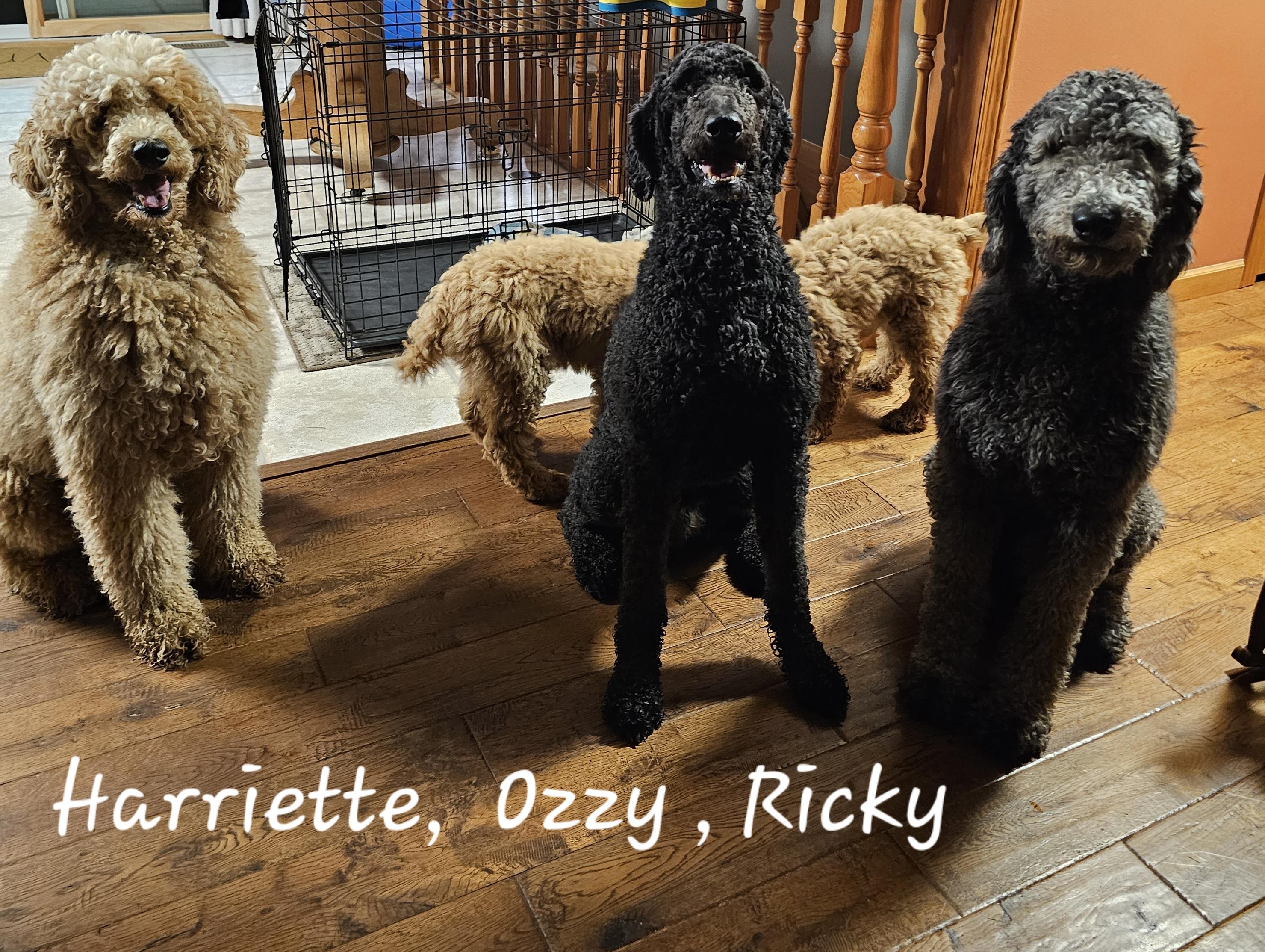 Ozzy matches his name!! He IS truly AMAZING!! HE was our 1st Standard poodle! He is the smartest dog EVER! He is a Certified Canine Good Citizen , is a Novice in Agility and has been a Stud That has produced BEAUTIFUL AND AMAZING PUPPIES with Harriette and others! He is Health tested and clear! Not only ALL that..he is gorgeous, great with kids and people of all ages, and a very loving boy!! He is ball motivated and also great at disc!