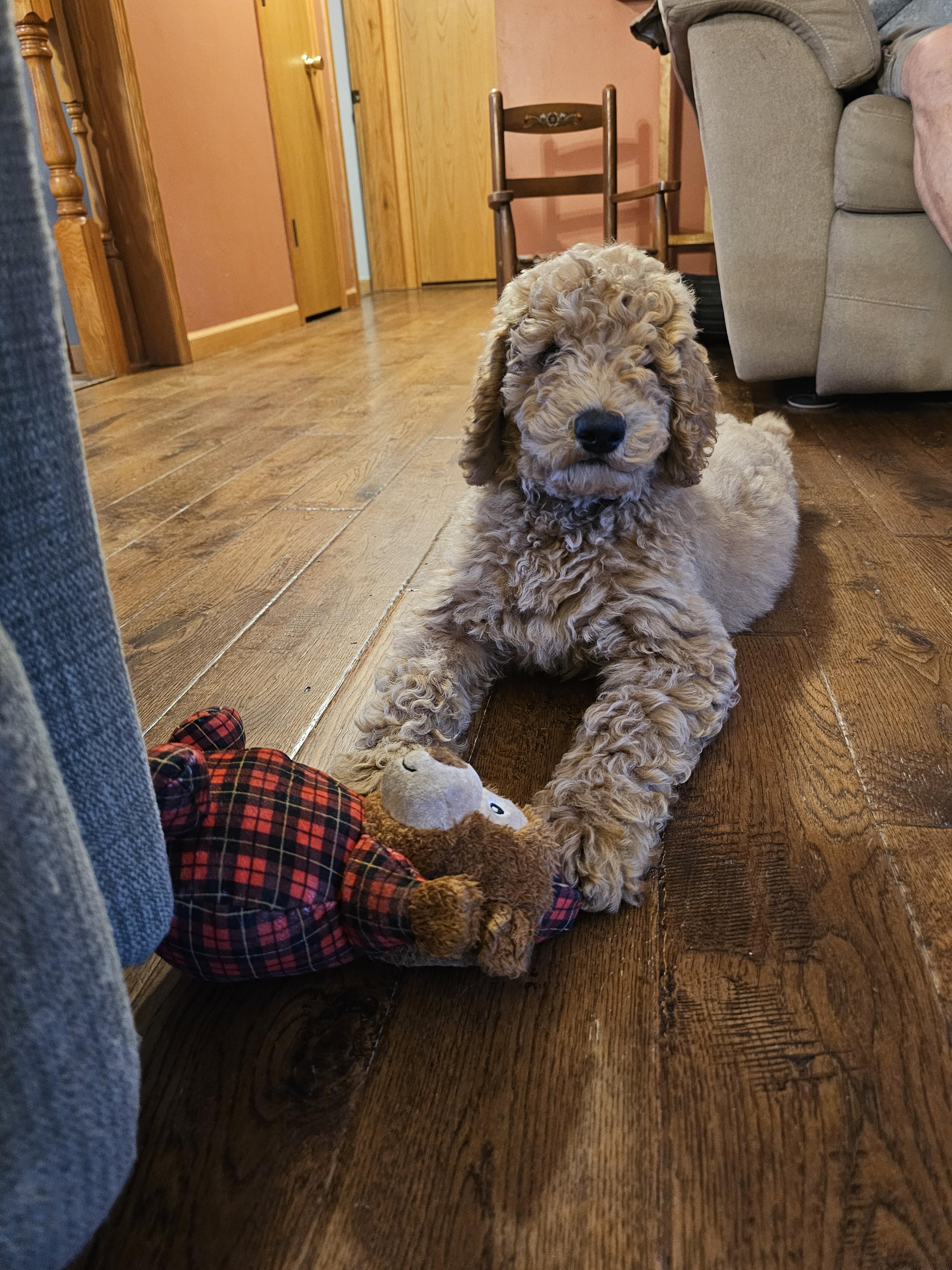 Archer is doing great! He is mastering sit and wait at feeding. Walking well on a leash. LOVES car rides. Plays well with Gunner (our 7yo spoo)or alone. Learning good manners for being in public, like “under” the table when at our fave neighborhood restaurant. He is happy and growing at lightning speed! A wonderful blessing to our home!❤️🐾