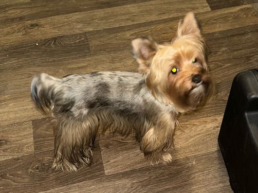 Mazie is a female Yorkshire Terrier. Carefully selected as a great representative of her breed, Becky decided to make her part of their program. Becky has passed Good Dog’s screening process, which involved a review of their breeding practices, environment, and the mental and physical health of their dogs.