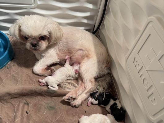 I love having shih tzus and our breeder retired, so I wanted to carry the torch. I had shih tzus growing up and loved it so much. The whole process is so incredible, watching Piper become a Mom. Seeing her smile and nurture her puppies, and having my own kids involved in the process.