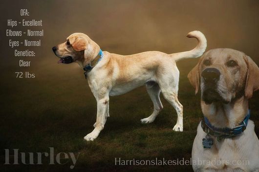 Harrison's Lakeside Labradors LLC reports to performing the health tests below on their breeding dogs. Ask your breeder about the tests performed on the parents of your litter. Learn more about health testing for Labrador Retrievers.