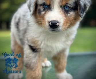 I'm Missy F., the breeder behind Hart of Aussies located in Upton, KY. We treasure each puppy in our program and give them all the attention and care that we possibly can. We work hard so our puppies can leave our home with confidence, ready to take on the world with their new family! They are affectionate, intelligent, and cute as can be!