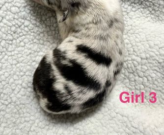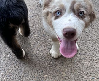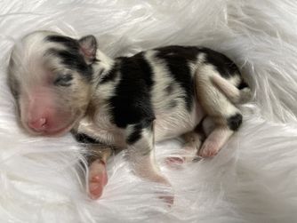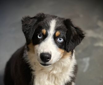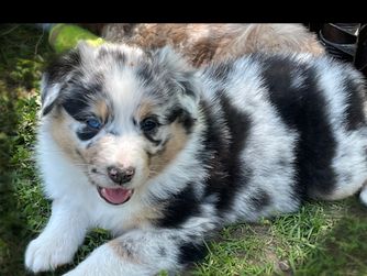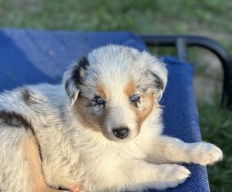Our puppies include blue merle, black tri-color, and red tri-color. Colors will vary depending on the parent dogs.