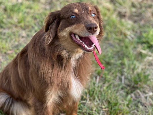 Honey is a female Australian Shepherd. Carefully selected as a great representative of her breed, Missy decided to make her part of their program. Missy has passed Good Dog’s screening process, which involved a review of their breeding practices, environment, and the mental and physical health of their dogs.
