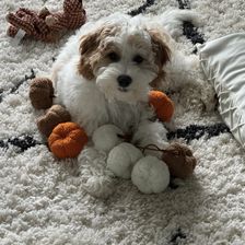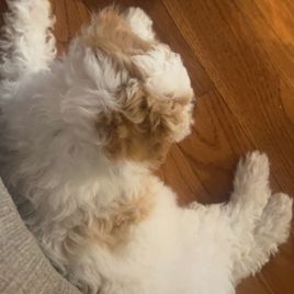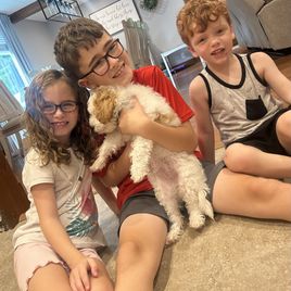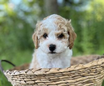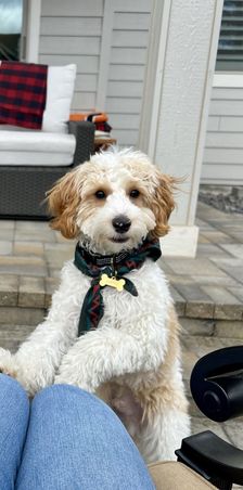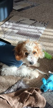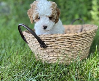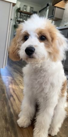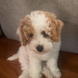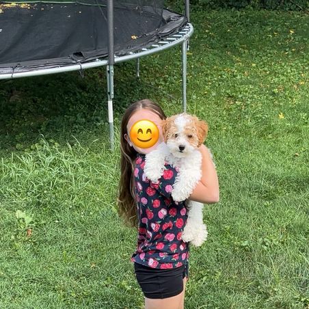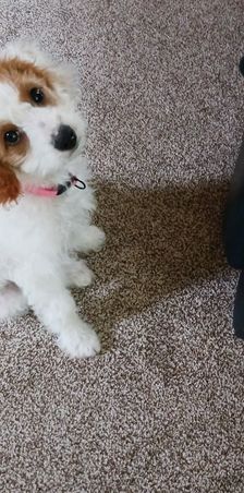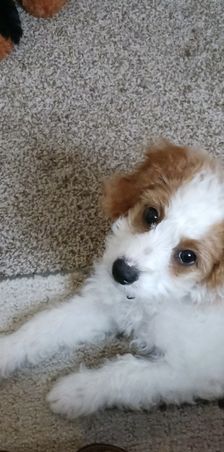 “Meet Lily, are funny, sweet, happy girl. A true lap puppy (any lap will do). Exactly what we wanted. Much care and consideration is given to assure healthy, sweet tempered puppies. All you have to do is meet Luna (the mommy) to know they are special pups. Courtney and the girls worked with each puppy, getting them ready for their forever family. Lily was completely crate trained, no accidents, no whining. She was well on her way to being completely housebroken and learning commands of sit and come. Courtney has been wonderful, helping us through this, new to us, adventure. Encouraging us to contact her with any questions or concerns. We are so thankful for Hart's Cavapoos and I strongly encourage anyone who is even beginning to think of adding a puppy to their family to contact Courtney at Hart's Cavapoos.”