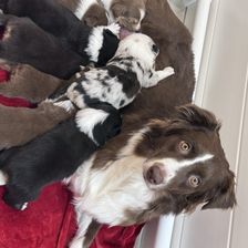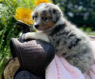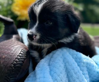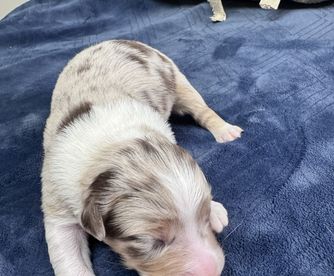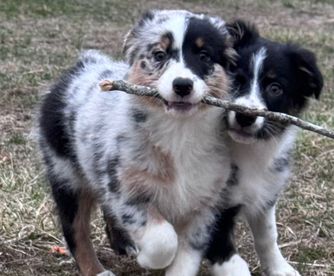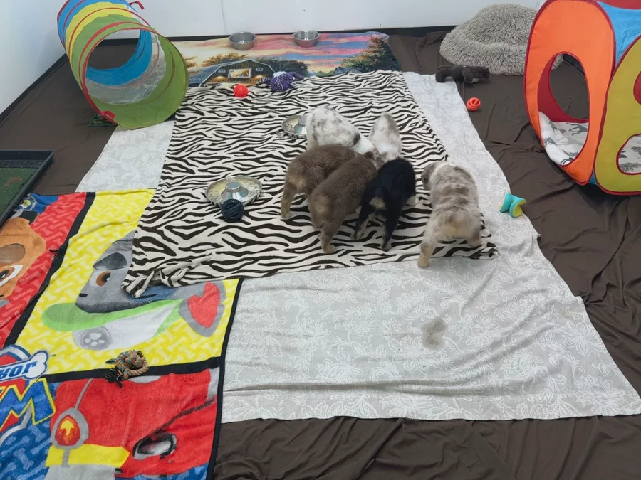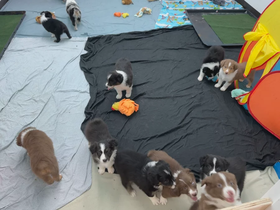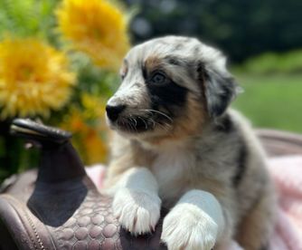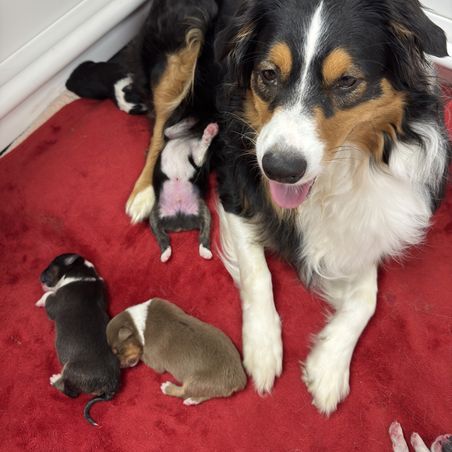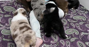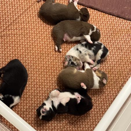 Our puppies include red & white, black & white, red merle, blue merle, red, and black tri-color. Colors will vary depending on the parent dogs.