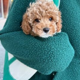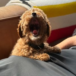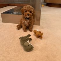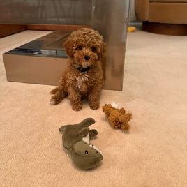 Dash is an apricot AKC Registered Miniature Poodle. He's smart and loyal, and he loves everyone!