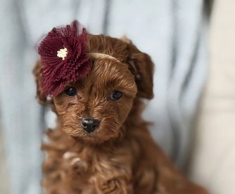 Our Cavalier King Charles Spaniel puppies include blenheim, ruby, tri-color, and black and tan. Cavapoo puppies include red and apricot. Goldendoodle puppies include apricot and red. Poodle puppies are apricot. Colors will vary depending on the parent dogs.