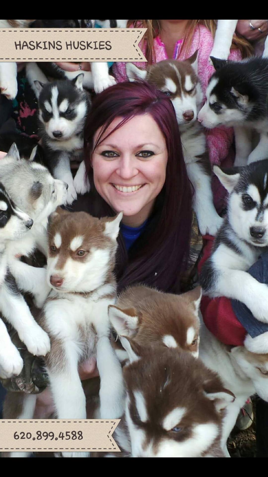 I'm Sarah H., the breeder behind Haskins Huskies located in Kansas. We are huge animal lovers and have a special place in our hearts for our dogs. We want to provide top-quality beloved companions. We focus on the proper development of all our puppies because we know that each one is unique and deserving of undivided love and attention. Each puppy is bred, raised, and loved indoors to ensure health, happiness, and harmony at the start of its life. At Haskins Huskies, beauty is a given, but producing healthy, loving, and versatile puppies is our true goal.