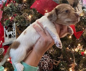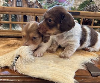 Dachshund puppies include piebald, cream, wild boar, chocolate and tan, black and tan, and dapple. Colors will vary depending on the parent dogs.